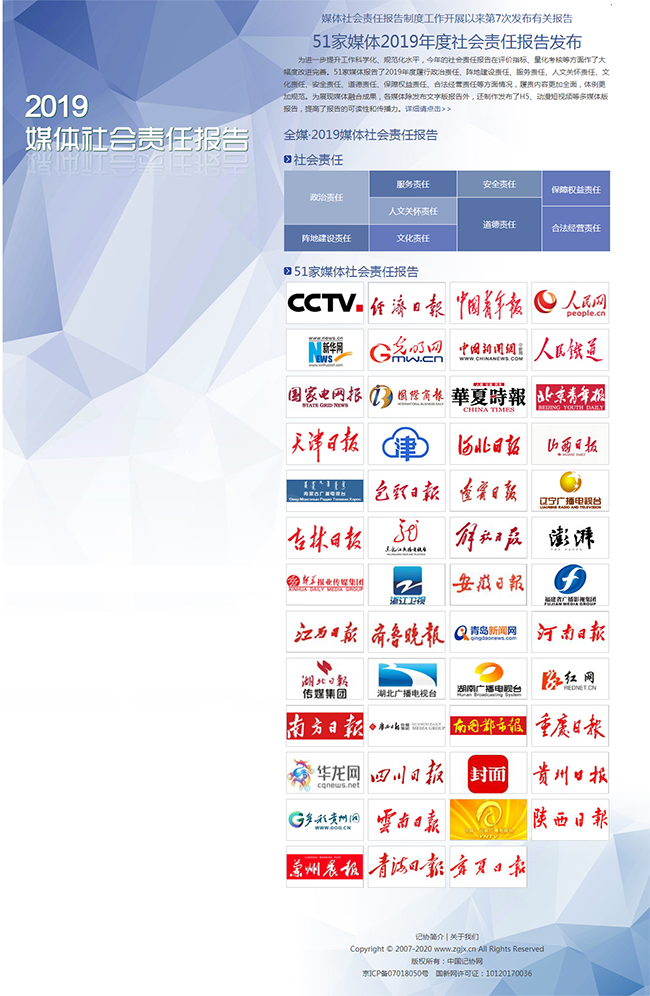 2019年度媒體社會責任報告單位增至51家,包括7家中央主要新聞媒體、4家全國性行業類媒體,以及全國29個省(區、市)的40家地方媒體。