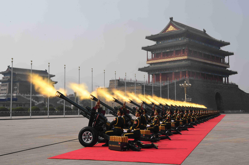10月1日,慶祝中華人民共和國(guó)成立70周年大會(huì)在北京天安門廣場(chǎng)隆重舉行。 圖一:中共中央總書記、國(guó)家主席、中央軍委主席習(xí)近平發(fā)表重要講話并檢閱受閱部隊(duì)。這是習(xí)近平在天安門城樓上。 圖二:10月1日,慶祝中華人民共和國(guó)成立70周年大會(huì)在北京天安門廣場(chǎng)隆重舉行。 圖三:這是行進(jìn)中的儀仗方隊(duì)。 圖四:這是禮炮鳴響。 圖五:這是"致敬"方陣。 圖六:這是東風(fēng)-41核導(dǎo)彈方隊(duì)接受檢閱。 圖七:這是空中護(hù)旗梯隊(duì)。 圖八:這是氣球騰空而起。