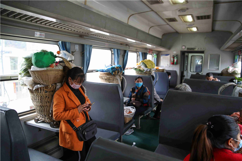 往返于貴州省遵義市與重慶市的5630/5629次普速列車,全程312公里,行駛10多個小時,是人們常說的“綠皮火車”。列車穿行于山區,最高票價23.5元,區間內最低票價2元。沿線25個站連通很多村寨,目前仍是沿線民眾趕集買賣、走親探友、上學的重要交通工具。隨著國內疫情防控形勢持續向好,列車逐漸恢復了往日的繁忙。
