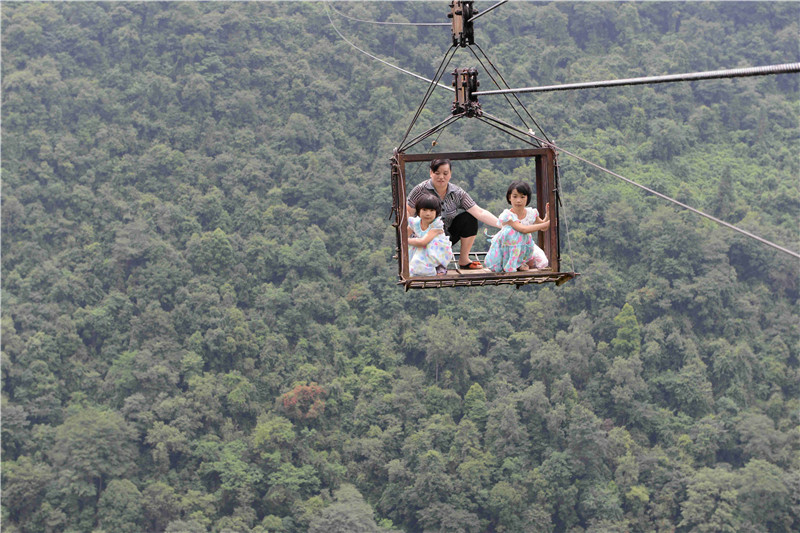 雨后初霽,抬眼望去,“鐵籃子”高懸幽深峽谷之上,在夕陽里泛著微微的光。這條運行了23年的索道,見證著這里的日子一天好過一天。