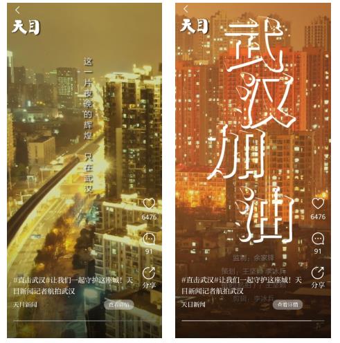 直到有一天,記者爬上天臺時已經到了傍晚,突然發現夜晚的城市高樓間布滿了密密麻麻的萬家燈火,當即決定再用無人機拍攝夜晚的武漢。視頻里,無人機的鏡頭飛過武漢高樓。整個城市燈火通明,有著白天感受不到的生命力。每幢高樓里的每一盞燈,背后都是一個堅守的武漢家庭。燈火閃爍,有如一座城市不屈的心跳。現場畫面還記錄下了動人的一幕:天臺上的醫療隊員在黑夜里舉起手機,他們手機屏幕上的燈光與武漢的萬家燈火相互呼應。拍攝完成的素材傳到后方編輯部,編輯在這個場景上加了一句字幕:“這一片夜晚的輝煌,只在武漢。這閃動著的守候的明眸,只是在祈禱、在等待。”
