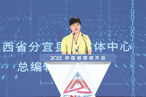 作為縣級融媒體中心代表,江西省分宜縣融媒體中心總編輯李建艷在2022中國新媒體大會主論壇上作主旨發言。