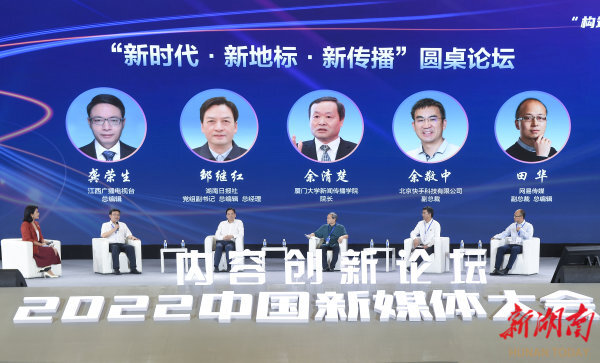 8月30日,2022中國新媒體大會(huì)“構(gòu)筑主流輿論新高地”內(nèi)容創(chuàng)新論壇上,五位嘉賓以“新時(shí)代·新地標(biāo)·新傳播”為主題對(duì)談。湖南日?qǐng)?bào)全媒體記者 辜鵬博 攝