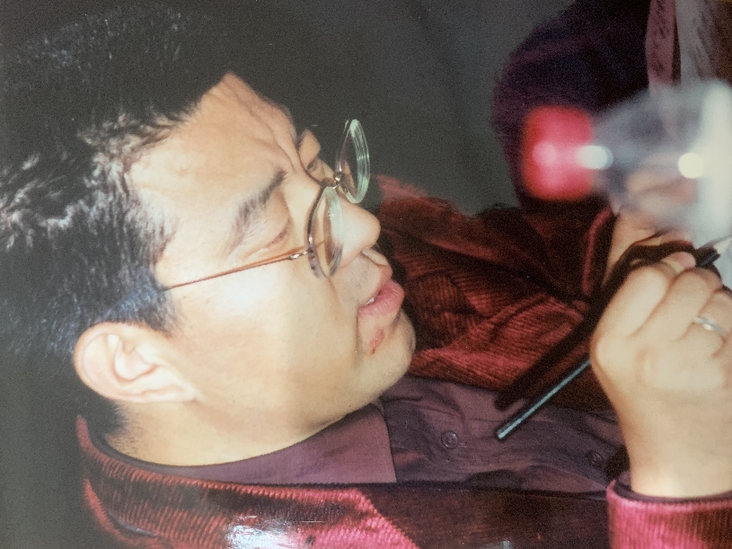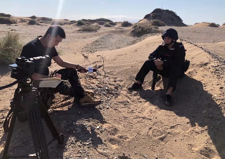 2019年9月,四川封面新聞國內部新聞采訪中心記者刁明康(左)在新疆哈密采訪邊防警察。