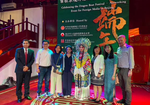 >> 2023年6月19日,中國記協與北京市新聞辦在北京顏料會館聯合舉辦常駐京境外媒體端午節聯誼活動,體驗京劇文化。