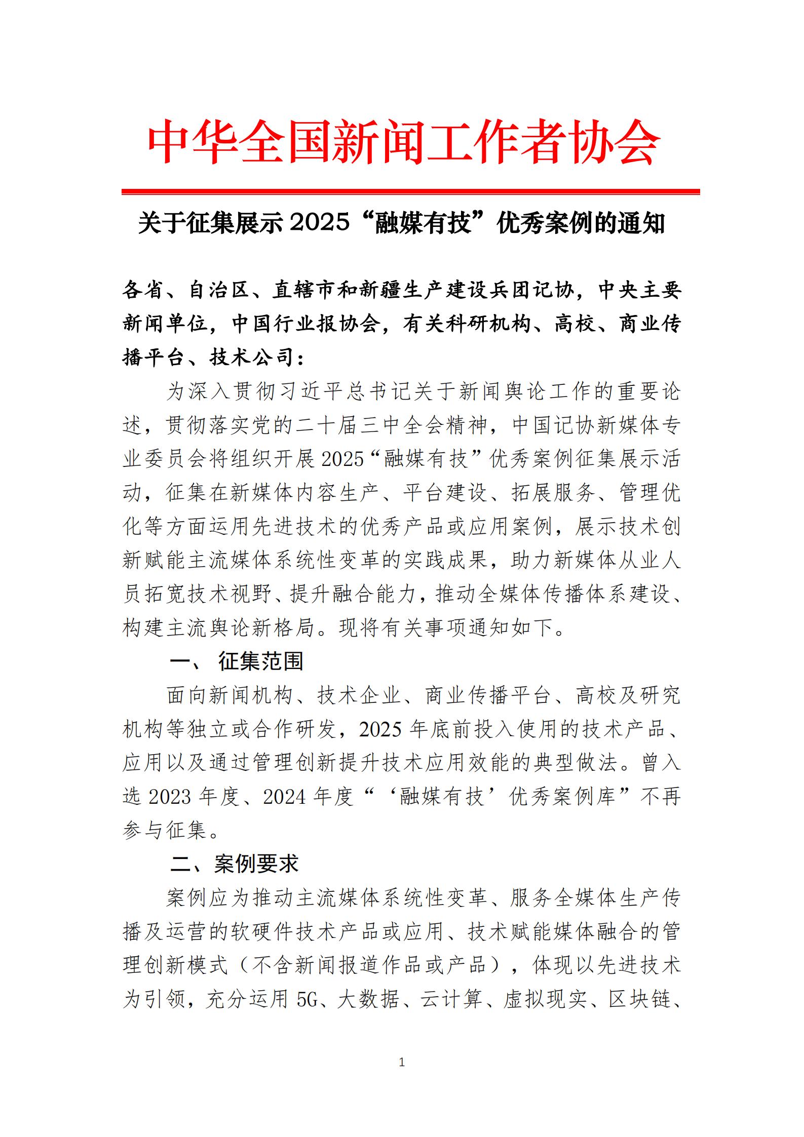 关于征集展示 2025“融媒有技”优秀案例的通知