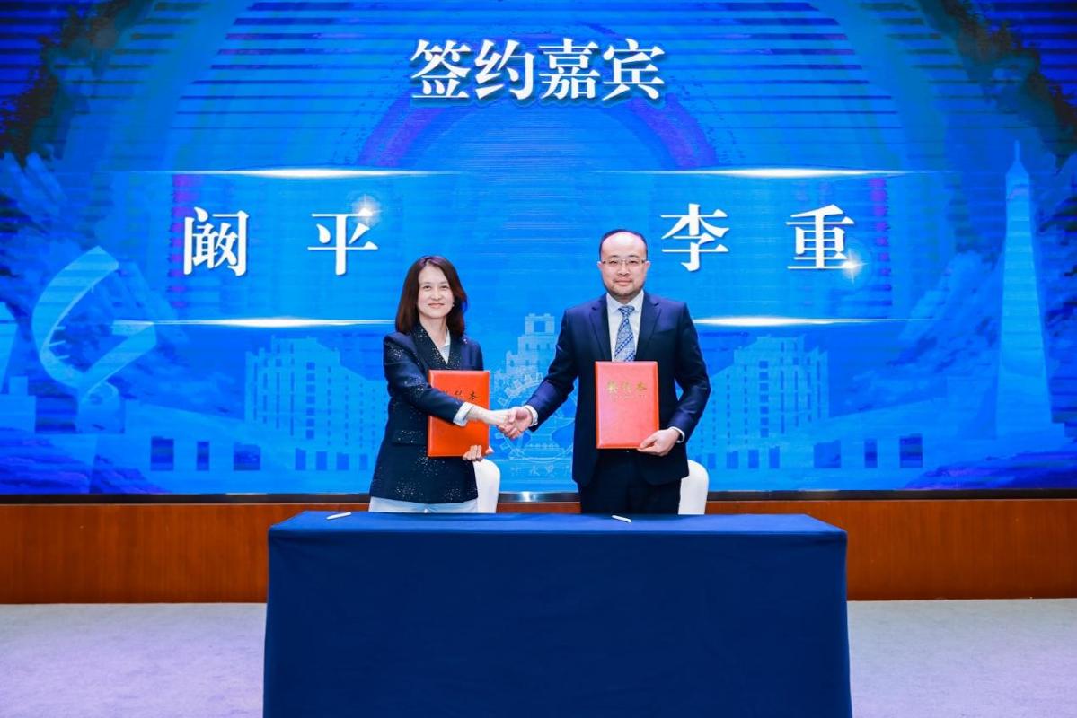 阚平,西安交大出版社党委书记、社长李重进行“新大众文艺系列丛书”出版签约。