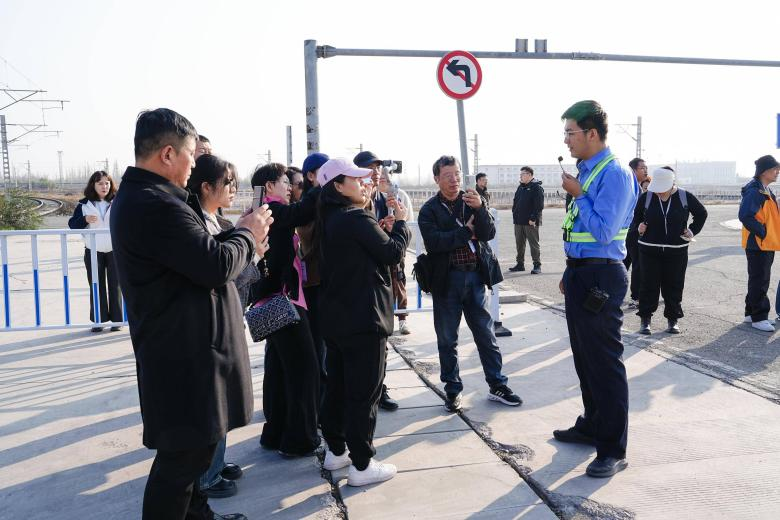 采访团认真聆听工作人员讲解,了解铁路口岸货场情况